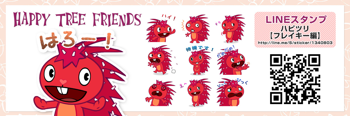 ハッピーツリーフレンズ(Happy Tree Friends)のLINEスタンプシリーズにフレイキー編が登場! いつもオドオド、臆病なヤマアラシ、フレイキーのかわいいスタンプです!ぜひ、ダウンロードしてご利用ください!